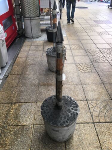 メッセージ性あるパイロンです。 ダブルエクスクラメーション付きで犬のトイレではないことを、強い色彩で防犯カメラの存在を、それぞれ知らしめています。 表彰台式の段差設置もいい感じです。 【採取地:大阪市】